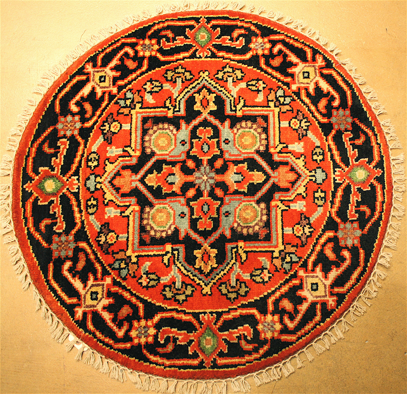 Categories: Featured.,Tags: Fine Serapi, Hand Knotted, India, Round, Serapi, and Wool.,Sizes: Rounds.