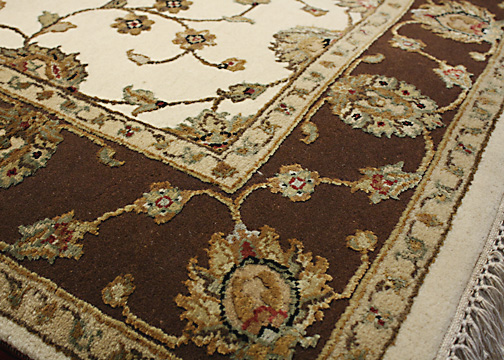 Categories: Featured.,Tags: All Over Pattern, Brown, Fine Tabriz, Formal, Hand Knotted, India, Ivory, Viscose, and Wool.,Sizes: 4x6.