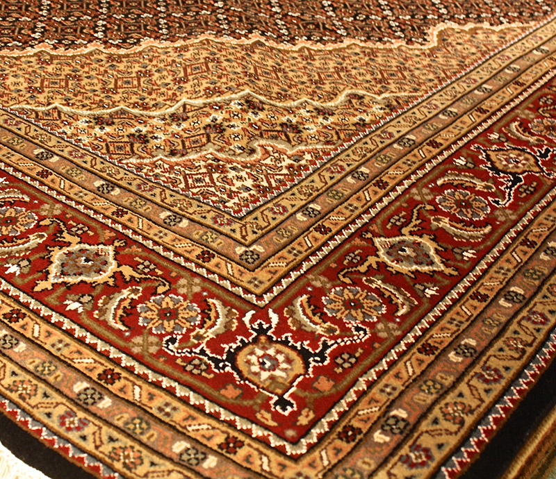 Categories: Featured.,Tags: Black, Fine Tabriz Mahi, India, and Red.,Sizes: 8x10.