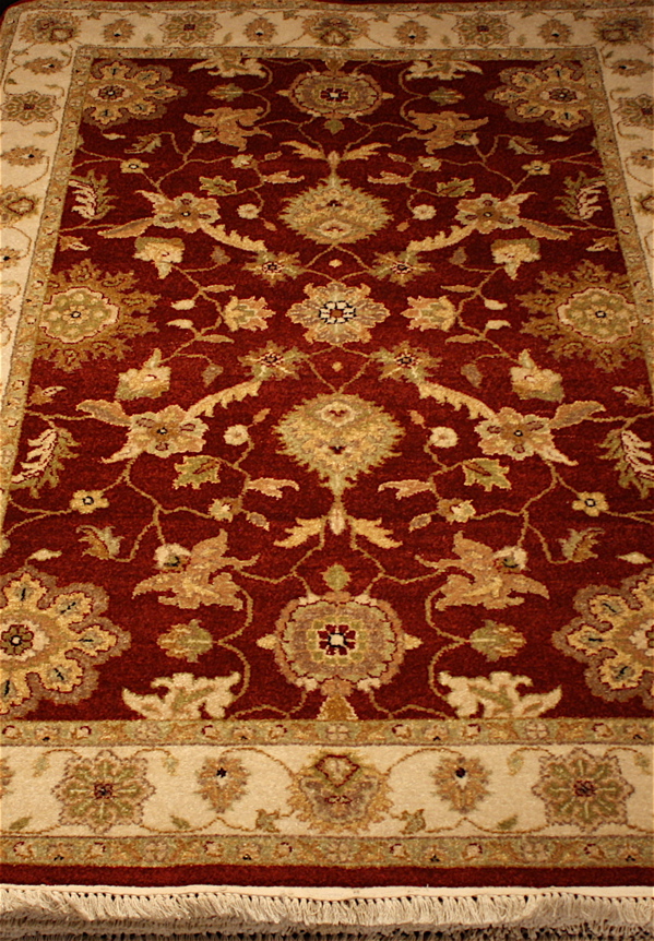 Categories: Featured.,Tags: Hand Knotted, India, Ivory, Peshawar, Red, and Wool.,Sizes: 4x6.